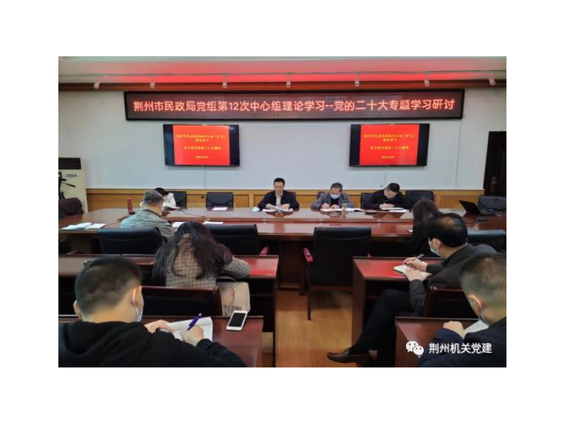 10月26日,荆州市民政局召开党组理论中心组(扩大)学习,传达学习习近平在中国共产党第二十次全国代表大会上的报告、习近平在参加党的二十大广西代表团审议工作会上的讲话、习近平在二十届中共中央政治局常委同中外记者见面会上的讲话、党的二十大关于十九届中央纪律检查委员会工作报告的决议和《中国共产党章程修正案》决议等内容。局党组书记、局长易波涛主持会议,局党组成员、调研员参加了学习研讨。