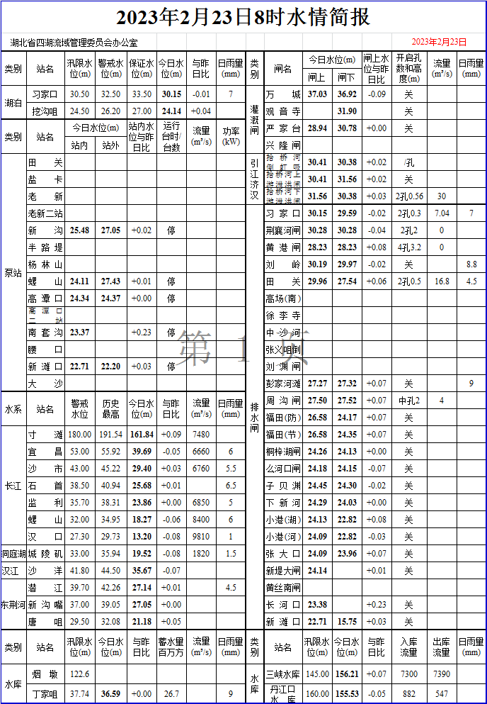 2023年2月23日8时水情简报