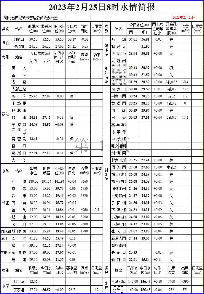 2023年2月25日8时水情简报