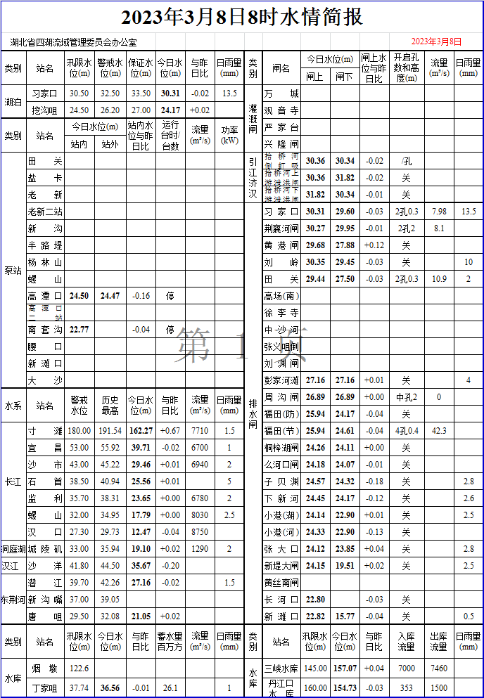 2023年3月8日8时水情简报