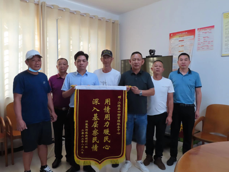 近日,熊河镇新明村一组四名群众将一面绣有“深入基层察民情、用情用力暖民心”的锦旗送到江陵县365提款_365玩球安全吗_bob365管理服务中心党总支手中,借此表达全体村民谢意。